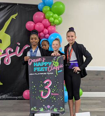 For the first time our competitive team headed to meet where our USA & NEOGL both attended. The girls were headed to Dawn’s Happy Feet Classic in Talmadge, Ohio. These girls really Wow ’ed them and their coaches at this meet. Many of our girls earned 9’s, personal bests and amazing places all around! Our Xcel Platinum team earned third place team! Way to go!